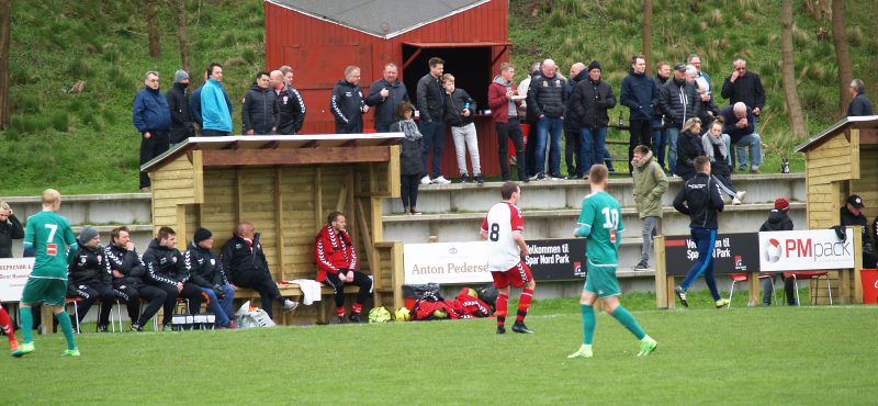 17.min. 1-1. Vi har en sløv periode af kampen i varmen. En skidt aflevering fanges. De slår diagonalt. Indlæg og Vildbjerg topscorer Mads Overgård kommer først og scorer.