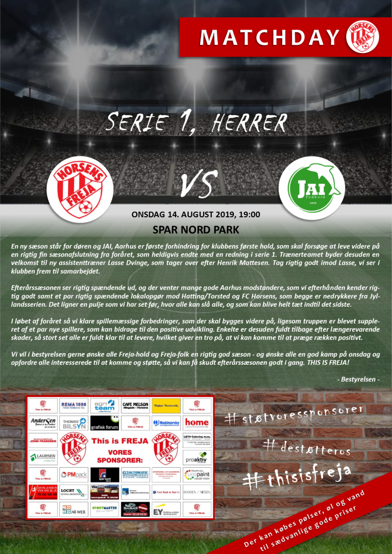 Vi vil i bestyrelsen gerne ønske alle Freja-hold og freja-folk en rigtig god sæson og ønske alle en god kamp på onsdag og opfordre alle interesserede til at komme og støtte, så vi kan få skudt efterårssæsonen godt i gang.