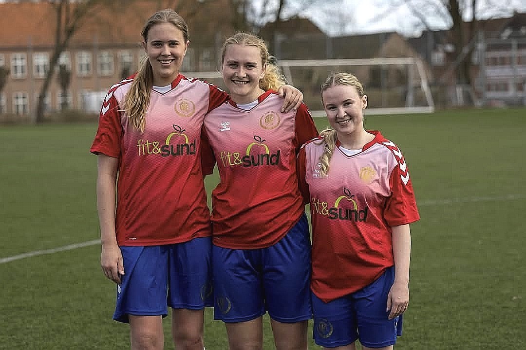 Rikke Pleidrup Nørgaard og Ida Jervild Christensen, der begge har spillet i Egebjerg IF, og i midten Helena Cargnelli, tidligere FC Horsens.