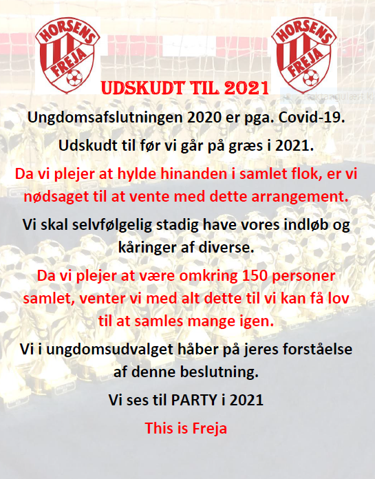 Ungdomsafslutningen 2020 er pga. Covid-19 udskudt til før vi går på græs i 2021.
